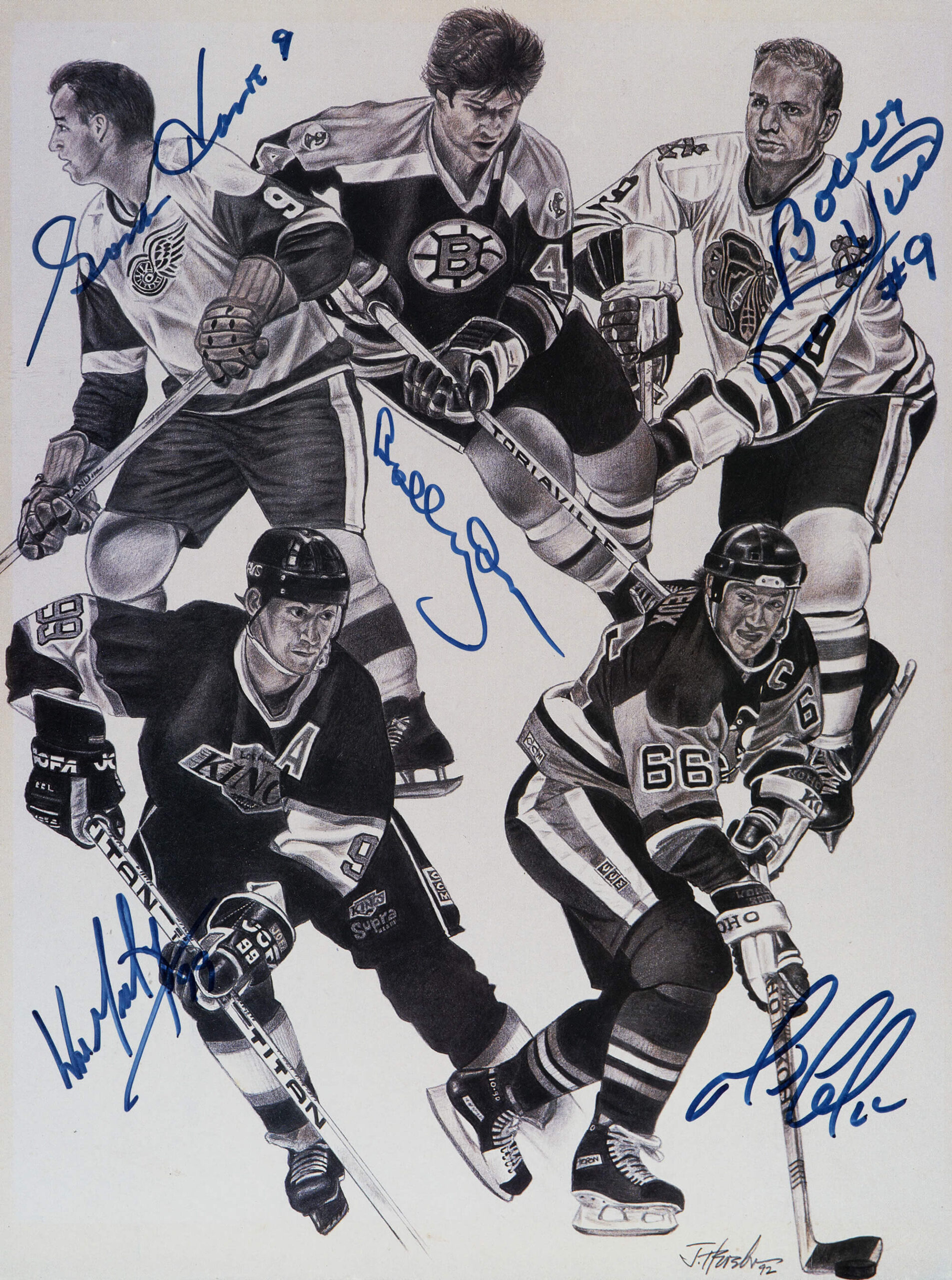 Scoring 35 goals in an NHL season is a great accomplishment. Typically, fewer than 40 skaters reach 35 goals in any given season. One would have to average 35 goals a season for 20 years if they wanted to reach one of hockey’s most impressive marks — 700 goals. All eight players who achieved that incredible mark — including all-time goal scoring leader Alexander Ovechkin — have signed this piece of hockey history.